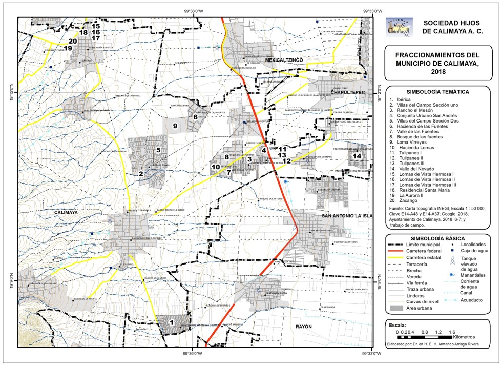 Mapa 1. Fraccionamientos del municipio de Calimaya, 2018