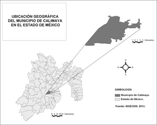 ![]() Fuente: Elaborado por Dr. en H. E. H. Armando Arriaga Rivera, con base en información del Instituto de Investigación e Información Geográfica y Catastral del Estado de México (IIIGECEM), 2013 Bibliografía: